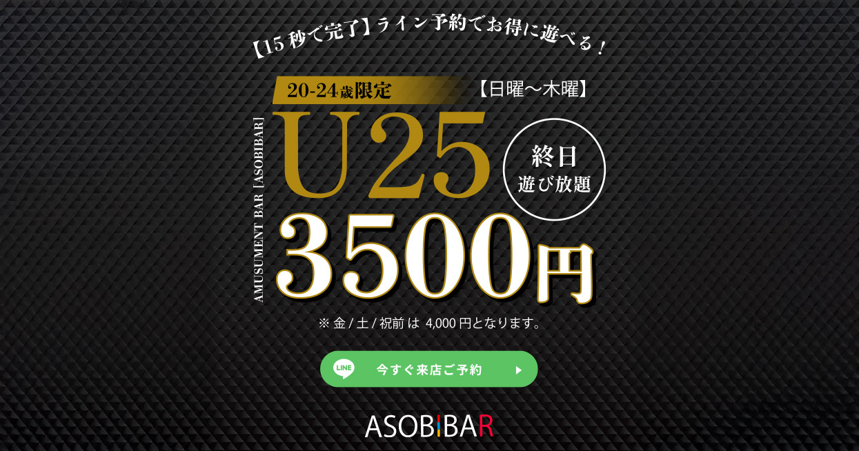 ASOBIBARで非日常の体験を是非お楽しみ下さい。